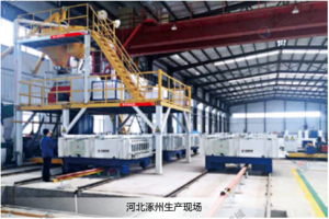 天意公司自主研發的大型攪拌設備配有自動配料系統,結合材料的性能使料漿攪拌更均勻,能夠很好的融合在一起。料漿泵送系統更好的將攪拌好的料漿輸送到設備里面,澆注模式更簡單方便。發泡系統采用變頻發泡技術,提高了發泡速度,節省了原材料,墻板成型機自動行走,產品成型速度高。